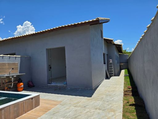 Linda casa, novinha com piscina com cascata, churrasqueira, área de serviço, 2 vagas de garagem, 2 dormitórios sendo 1 suíte, 1 banheiro social, local residencial, aceita financiamento bancário, liberamos o seu FGTS, marque já a sua visita com a gente.