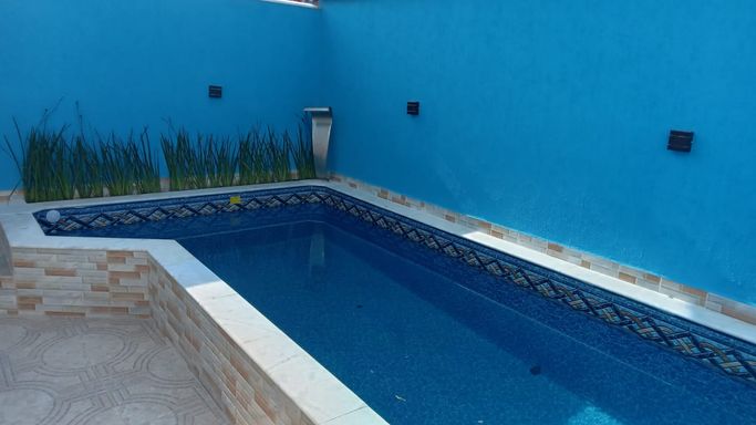 Casa isolada, nova, com 2 dormitórios sendo 1 suíte, sala, cozinha estilo americana, banheiro, 2 vagas de garagem, área coberta com churrasqueira e pia, piscina grande, aceita financiamento bancário.