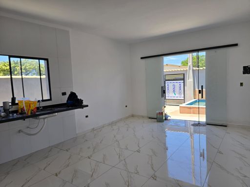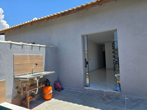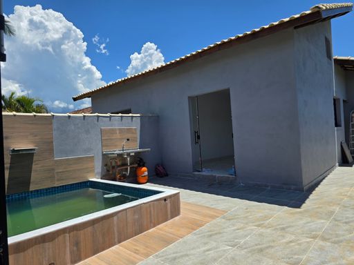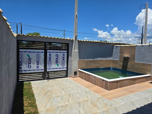novinha com piscina, com cascata, sala ampla, cozinha, 2 dormitórios sendo 1 suíte, 1 banheiro social, aceita financiamento bancário, liberamos o seu FGTS.