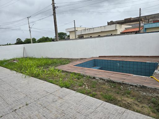 Não perca essa oportunidade casa sobreposta baixa com piscina, terreno grande, sala, cozinha estilo americana,1 banheiro, 2 dormitórios, 1 vaga de garagem